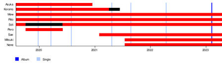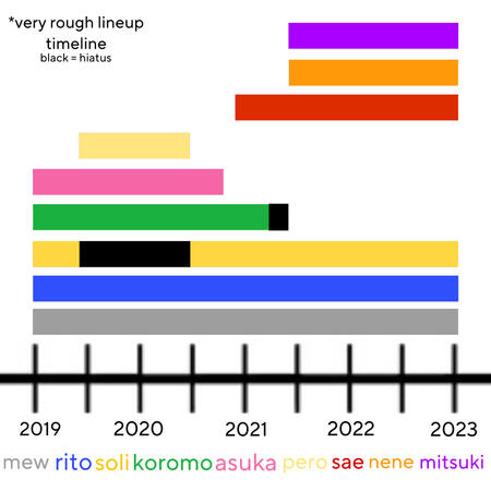 meme tokyo (ミームトーキョー, sometimes stylized as ‘meme tokyo.’) is a 6 member japanese girl group that was formed in 2019 under dear stage. they are the junior group of dempagumi.inc, a senior group also from dear stage. meme tokyo’s major label debut was august 2021. in person activities are typically done as 5 members since soli lives in korea.